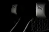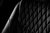 Kontrastene fortsetter innendørs, med hvite detaljer rundt ventilene på et sort dashbord. Skinnsetene har diamantmønstrede puter utført i semsket skinn.