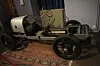 Men klosteret i Molsheim har fått sitt museumsminne, og i forbindelse med det, ned en trapp og inne i et trangt rom, har de plassert noen Bugattiminner. Det er riktignok to og en halv bil der, men så er det noen vanvittig tiltrekkende hjelpeløse montre som skal gi oss litt Bugatti-inntrykk.
