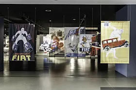 Fiats innsats på grafikk-fronten er enestående. De har gått utenpå de fleste bilfabrikker når det gjelder plakater og annonser. De har brukt noen av Italias fremste kunstnere til å jobbe med salgsfremmende tiltak, og utstillingen i det gamle museet gir mange gode eksempler på akkurat det.