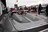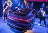 Noen stod en time i kø. Når man først kom seg gjennom første dør, var det venting i en sluse før skuelystne gruppevis ble vist inn til det dunkle og røyklagte rommet der Taycanen stod. Vel inne i det aller helligste kunne man få sitte i bilen og studere detaljene på nært hold.