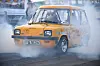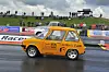 På Santa Pod ble imidlertid den rekorden også strøket nå. Denne merkelige lille loppa av en veteranbil ble klokket inn på 9,86 med en sluttfart på 195 km/t.