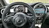 Etter en halvtime i MX-5 er det veldig rart å hoppe over i Minien. Den føles virkelig svær til sammenligning. Mye av det kan nok tilskrives den komparativt høye skulderlinja, og at frontruta er mye lengre unna ansiktet enn hva tilfellet er i japaneren.