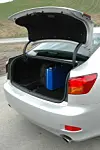 Bakparten ender i en antydning av en spoiler som er integrert i bakluka, og hvor de runde baklyktene som særpreget forgjengeren nå er forlatt til fordel for mer tidløse liggende baklykter. Både ut- og innvendig gir bilen inntrykk av å være minst et nummer større enn forgjengeren, IS200, som den avløste i 2005.