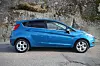Eksteriørmessig er Fiesta den som nok tar design lengst på disse bilene. Særlig den nye fronten er aggressiv og takspoileren bidrar til det sportslige utseendet.
