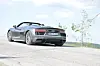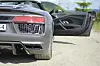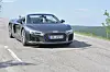 Hos R8 er karbonfiber i stor grad kosmetikk, slik som på motordekselet (som på grunn av taket dessverre ikke kan eksponere den herlige 10-eren, slik coupeen gjør), men de tradisjonelle dørene og store døråpningene gjør at den ikke er noe vanskeligere å håndtere enn en ordinær coupé.