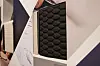 Teppene var mekket av håndfarget silke, «det er utrolig vanskelig å få til den helt riktige sjatteringen» fikk jeg høre der de lå og skinte blått i det blå lyset. Og der blått åpenbart var en av de fargene de i hvert fall ikke skulle ha.