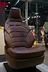 - Vet du hva? Vi ble alle så begeistret da Martin (Designsjef Martin Smith) var enig i det rosa, sa en entusiastisk Laura Blossfeld, ansvarlig for store deler av interiøret, da hun skulle vise meg den rosa tråden i stingene i de intrikate setemønstrene.