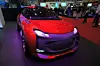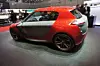 De har en tosylindret CNG motor som de ikke forteller noe særlig om, bortsett fra at de 8 kg gass (i en 55 liters trykktank) rekker til 400 km. Forhåpentlig med tilfredsstillende prestasjoner.Karosseriet er fullt av grafiske signaler, som virkelig står ut fordi store flater, dører, hekk, front, er farget i en lekker purpur (årets Genève-motefarge?) som står i klar kontrast til det røde karosseriet.At også den forreste delen av taket har en V-formet utringning løfter inntrykket, og siden bilen bare er 135 cm høy, er det ikke vanskelig å få øye på den visuelle finten.Smart