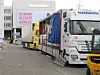 Utenfor står truckene – med nye og gamle kasser. Mange ser ut til å bruke det samme som i Paris i 2010 – mens andre igjen bygger opp helt nye stand i Genève. Det er trangt om plassen, og det siste som kommer inn er de nye bilene.