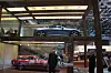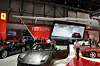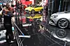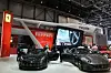 Ferrari har bygget opp noe komplisert som nok skal gi inntrykk av å være et depot på en moderne Grand Prix-bane. Den er full av detaljer og forvirringer. Porsche har noe som ser ut som en typisk Bauhaus enebolig, der hele fronten er åpnet for at du skal kunne ta en titt inn på det rene interiøret også.