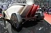 Hele karosseriet er selvbærende og er bare droppet ned på en ramme der man finner hjulene med navmotor i hvert, og det som trengs av elektro-komponenter.