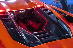 Derfor har han rammet inn motor-rommet, ikke noe glasstak, men fri utsikt til motoren med en 3D-struktur med sidekanter som minner om Diablo, med en snev av Miura.