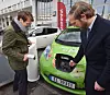 – Dette er et konkret eksempel på hvordan man kan gjøre elbilen enklere å bruke, sa klima- og miljøminister Tine Sundtoft (H) før hun gjennom en symbolsk handling plugget i stikkontakten til den første elbilen som hurtiglades hos butikkjeden Kiwi.