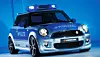 Den er den el-drevne Minien som tuningfirmaet AC Schnitzer har kost seg meg, og kledd opp som politibil.