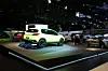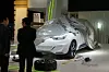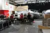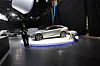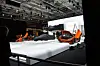 Men stort sett er det biler under laken vi ser, og folk som snekrer. Og noen bilfabrikker som har hengt opp svarte tepper rundt hele standen, slik at ikke heller naboen skal ane hva som skjer der inne.