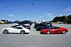 På parkeringsplassen så jeg både en Wiesmann på M5 basis («jeg har en Morgan med akkurat samme maskin også, men der sitter motoren helt fremme i ramma. Pussig hvordan to så like biler kan bli så forskjellige»), en 1986 (tror jeg) Testarossa og en F-Type med full R-pakke.