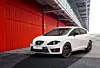 En Ibiza FR og en Leon Cupra R er lakkert Nevada-hvite for å fremheve spesialutstyr og styling du kan utstyre din nye Seat med, som sportslige felger, eksklusivt interiør osv.