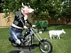 På vei bort til Tortona-området, der det er vegg til vegg showrom, og gamle fabrikker som i disse fem dagene er overtatt av designere, møtte vi et design-politisk uttrykk. Giorgetto Giugiaro malt som et lik i en amerikansk gangsterfilm i gata.