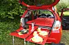 Denne boksen kan foldes ut, klikkes på plass, eller skyves ut og inn eller frem og tilbake, og vips, så har du soveplass til to, eller koke- og spiseplass for to eller fire, uten et eneste inngrep i selve bilen.