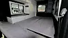 Bak forsetene har Lorinser revet ut alt som kan minne om en militær fortid og bygget inn en komplett hybel med flatt gulv. Kjøkkenkrok, sofa/seng (som ser veldig «hyggelig» ut for to), og en bordplate som klikkes på plass. I taket er det skap-plass og plass til å holde hodet høyt.