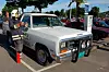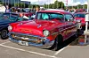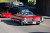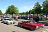 Bilene samles på parkeringsplassen foran Norges Varemesse som har åpne dører og matservering. Parkeringsplassen blir full av flotte restaurerte amerikanske biler.