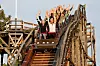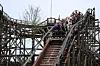 En bane bygget i tre byr på helt andre sensasjoner. Den herlige klikk-klikk lyden når toget trekkes opp til toppen av et kjede, knirkingen du hører i treet når du fyker – vel kanskje ikke akkurat fyker – beveger deg over skinnene som er utstyrt med ganske merkbare skjøter.