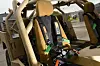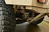 Men det skal nok litt til for at konstruksjonen må gi opp ute i ørkenen. Den er bygget for 36 graders angrepsvinkler, har en helt glatt underside, og bakkeklaringen kan justeres fra 12 til 30 cm. Fjæringen utføres av hydro-struts med en fjæringsvei herfra til i morgen.