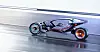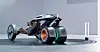 En skikkelig mellomting mellom en motorsykkel og en ganske åpen bil er det som dukker opp her. Avsender: MGs advanced studio i London.
