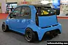 Baksetet er revet ut og i stedet har JA lagt inn en 1,3-liters motor på 230 hk der. 192 hester mer enn originalen – jeg tror på dem når JA sier at de dermed har Indias hotteste hatch. 2,6 kg på hver hestekraft holder en stund – i hvert fall opp til 190 km/t, der denne bilen stopper.