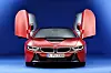 Innendørs er det mørke interiøret pyntet med røde kontrastsømmer. Dekor i karbonfiber og keramikk skal være med på å fremheve de spesielt sportslige egenskapene til i8.