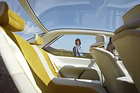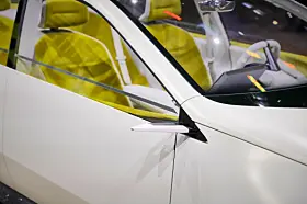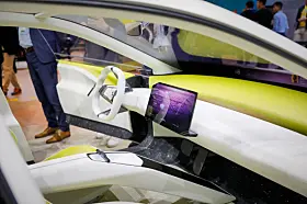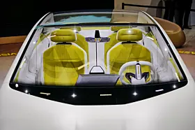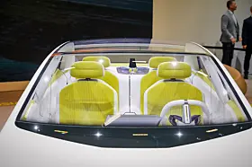 Men selvfølgelig blir den enkle harmonien ødelagt av en svær skjerm her også. Hvorfor i all verden, når den også byr på en panorama HUD (som åpenbart er mer produksjonsklar enn selve bilen)?