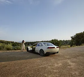 Jeg regner med at utstillingen gir meg større muligheter til å kartlegge hva som egentlig skjuler seg under den nye garderoben – men det er helt klart at dette er ren batteri-el – den vil aldri se noe hybrid eller forbrenning.