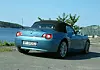 BMW Z4 kom på markedet i 2003 som erstatning for Z3, en bil som er populær spesielt blant unge kvinner. Z4 har langt mer maskuline linjer med et langt panser og korte overheng bak, dessuten har den elegante detaljer som blinklys skjult bak BMW-logoen på sidene. Linjeføringen er typisk Chris Bangle, elsket av noen, hatet av andre. Men vår blå bil med lyst interiør var utvilsomt et blikkfang på svingete Telemarksveier.