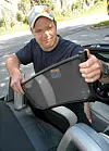 Da har BMW en mer praktisk konstruksjon med sin kallesje som opptar langt mindre plass slik at bagasjerommet er nær sagt like storr (eller lite) enten du kjører åpent eller lukket. Dessuten går av- og påkledning unna på halve tiden, kjekt når du blir overrasket av en uventet skur.