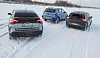 Vinterdekk, snø og holke får ikke fram de beste veiegenskapene i noen av bilene. Den franske og kinesiske trekker på forhjulene, spansk/tyskeren på bakhjulene. Ingen av dem kan leveres med drift på alle hjul, men testteamet noterte ikke i margen på kjøreboka problemer av noen art på nevnte føre.