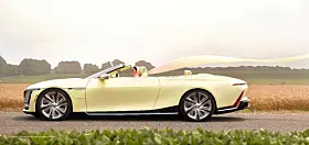 Og se på bildene av ryggen på forsetene. Kunne vært Art Noveau-fantasier på en Voisin fra 1930-tallet, eller fra en skreddersydd, femi, limousine på 50-tallet. Men nå finnes det materialer som gjør at man også kan utsette slike for frisk luft og sol uten å frykte forringelse.