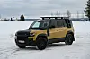 Iført den ikoniske fargen Deep Sandglow Yellow, med rikelig sort kontrast. 20-tommers aluhjul med stålfelg-look, ekstra beskyttelsesplater, snorkel, stige på siden, forsterket både her og der. Og med et enormt takstativ som gjør den digre fem meter lange bilen over to meter høy, gjelder det å passe på i garasjen.