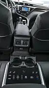 I USA er det ikke viktig å kunne trekke tilhenger etter en sedan, så det kan ikke Camry, men den har – i det minste på Platinum-varianten – elektrisk regulering av vinkelen på baksetet og styring av både musikkanlegget, temperaturen og bakrutegardinet (!) fra eget panel bak. Å sette bilen i revers overstyrer gardinet, men det går opp igjen så snart bilen kobles til drive.