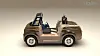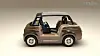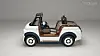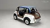 Ikke får du noen dører heller, men du kan få et soltak, en slags parasoll, som ekstrautstyr. Utført i badestrandriktig blå- og hvit-stripet canvas.