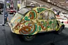 Rosemalt eller Janis Joplin/John Lennon psykedelisk? 2 CV-en på standen til Norsk Vegmuseum? Fantastisk bil og et ukjent kapittel fra norsk kunst&kulturhistorie.