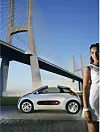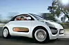 Konseptbilen er en ren toseter som i tillegg har plass til litt bagasje. Bilens runde, myke former fremheves av den hvite lakken den er belagt med. Mye hvitt er det også i interiøret – en fin kontrast til det knallrøde som er benyttet i seter, på dashbord og på rattet. Setet er for øvrig en benk for to, neppe særlig praktisk hvis sjåføren er liten og passasjeren langbent.