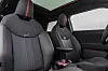 Bilen er utstyrt med JCW sportsseter i kunstskinn og interiøret er frisket opp med røde detaljer og sømmer.
