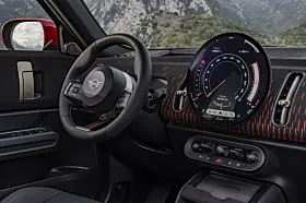 Sportslige egenskaper er selvsagt vektlagt i en bil med JCW-logoer spredt rundtomkring, det samme gjelder eksklusive detaljer som fremhever de sportslige egenskapene i både eksteriør og interiør.