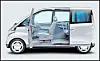 Så har vi to mikro-kuber, alle Daihatsus konsepter er 660 kubikkere denne gangen, i utpreget Postman Pat stil. FF Ultra Space har skyvedører til bakre avdeling og på bildene ser det i hvert fall ut som det er formidabel plass inne mellom akselavstanden på 2,4 meter. Igjen møter vi en vekt på bare så vidt over 800 kg – og disse bilene skal også møte voksne kollisjonsregler. Enten er Daihatsus modeller mer konsepte enn de burde være, ellers har fabrikkens ingeniører virkelig sett alvorlig på overvekt.