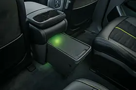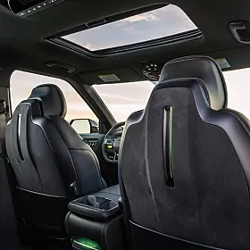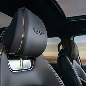 Mer karakteristiske designelementer finner du inni bilen. Lysegrønne aksenter er på plass i ulike områder av interiøret, inkludert rattet og setene. Unikt for EV9 GT er dype sportsseter med Alcantara innsatser, preget med GT-logoen. Bilen får også et sportsligere GT-ratt. Grafikken i bilen vil også få et eget GT utseende og egne lys signaturer inni kupeen.