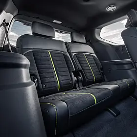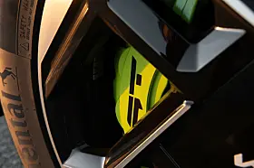 Utvendig er EV9 GT skodd med 285/45R-21 performance Continental-dekk pakket rundt eksklusive 21-tommers lettmetallfelger. Kia EV9 GT-caliprene er neongrønne.