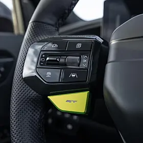 Ved å trykke på den gulgrønne GT-knappen som finnes på rattet, får du tilgang til GT-mode. Da våkner bilen til liv og det uten tekniske støttesystemer. Alle hestene slippes løs.