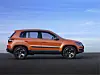 Front og sideprofil er typisk VW, men likevel ulikt alle eksisterende modeller. Det er benyttet mørk metallic-lakk som kontrast til den klare oransje lakken som dekker bilens hovedflater.