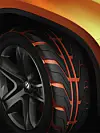 Dekkene er et kapittel for seg selv. 19-tommerne utviklet av Continental har oransje striper som matcher bilens lakk. Fargen er ikke bare lagt på, men er bakt inn under dekkets oppbygning.
