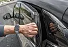 Først er det girvelgeren (a la Mercedes) i litt simpel plast på oversiden av den langt mer forseggjorte vinduspusserhendelen.